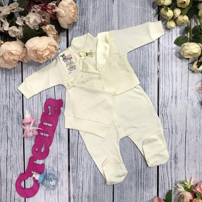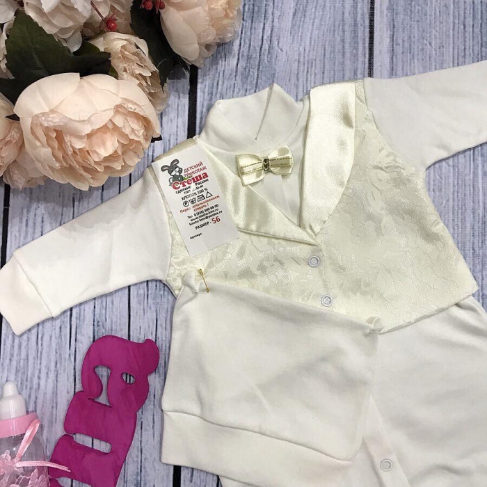 Купить оптом 321-СЛ. Платье из муслина детское, хлопок 100% сливочный, р. 74,80,86,92 в Прокопьевске