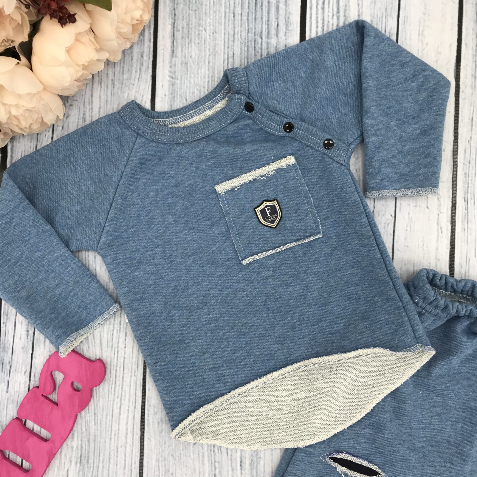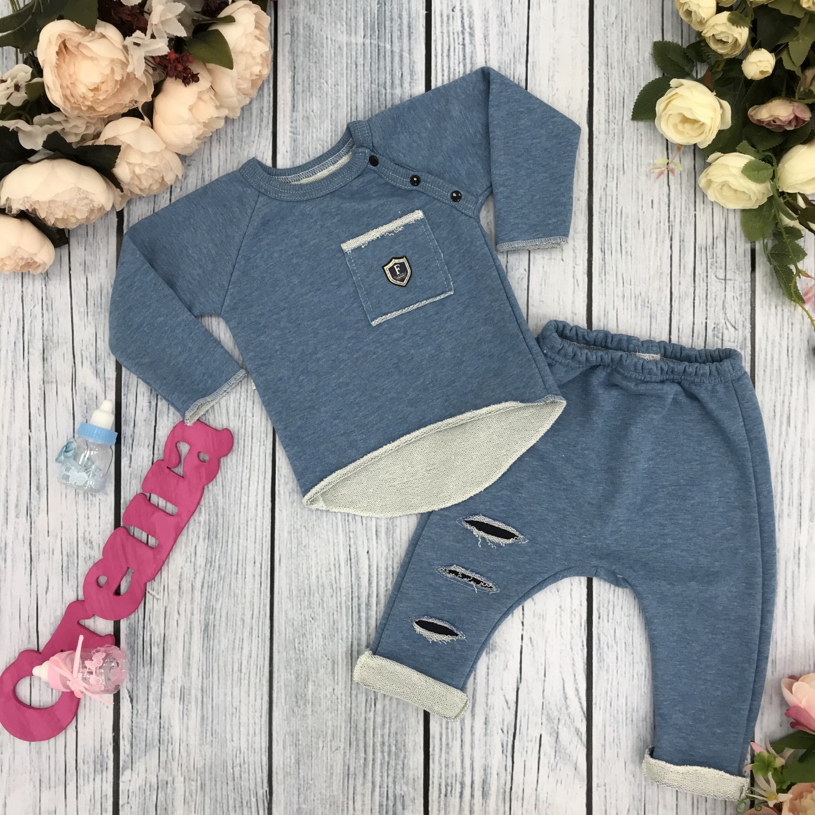 Купить оптом 239. Костюм ясельный, хлопок 65%, 35% ПЭ, 3-х нитка футер без начеса, джинса 74,80,86 в Прокопьевске