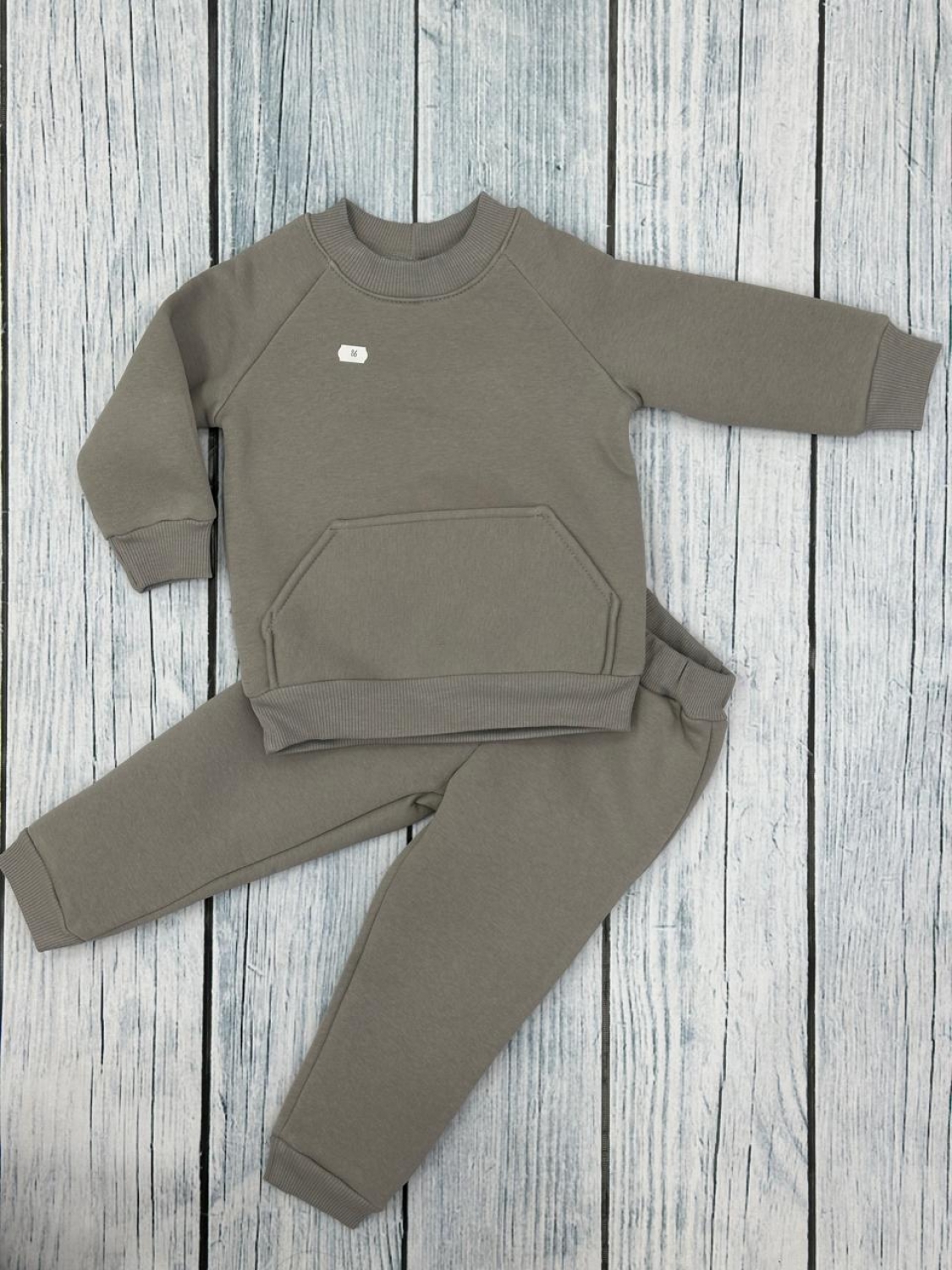 Купить оптом 297-СЕР. Свитшот + Штаны, хлопок 65%, 35% ПЭ, 3-х нитка (начес) серый ,80,86,92,98,104 в Прокопьевске