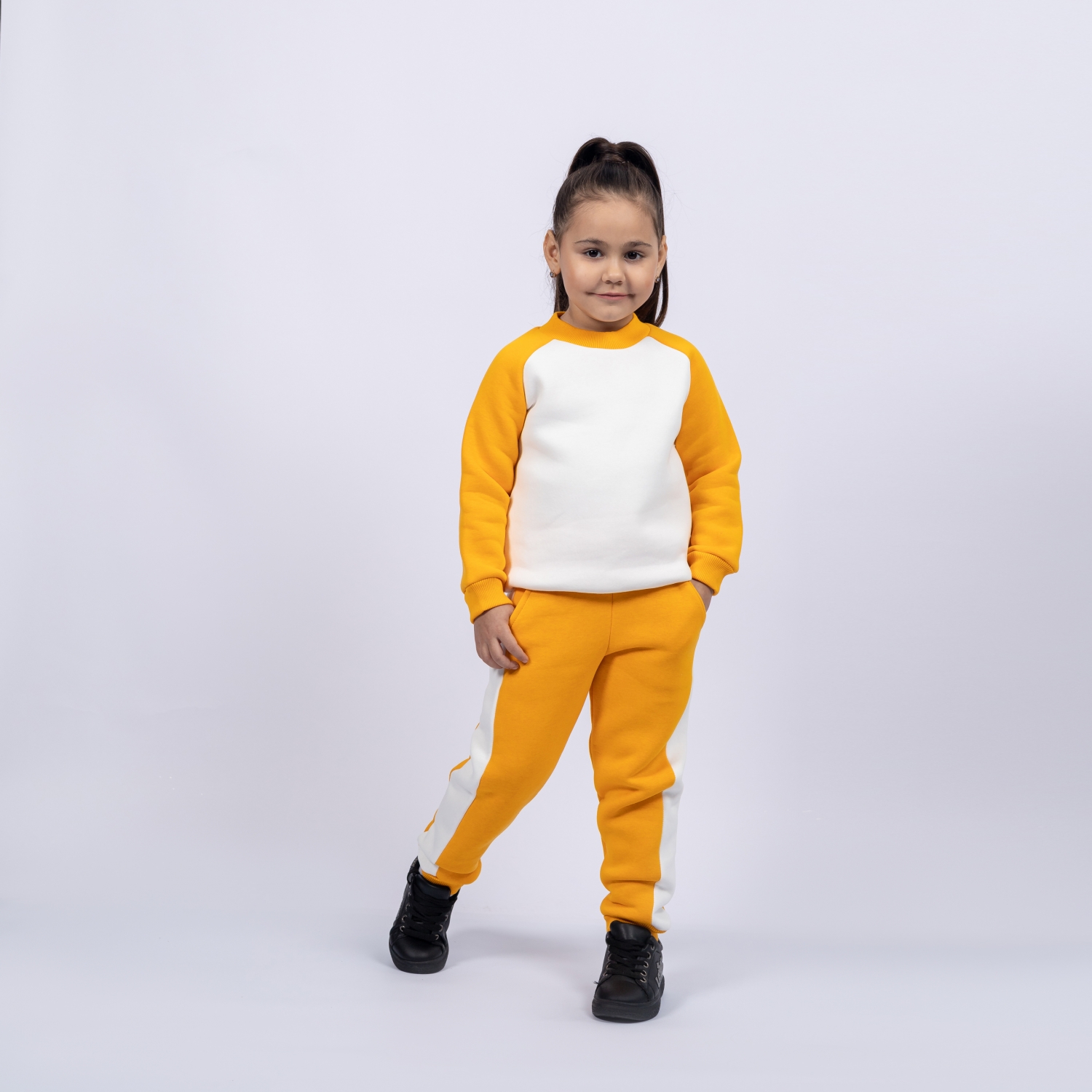 314-А. Свитшот + Штаны, апельсин, хлопок 65%, 35% ПЭ, 3-х нитка (начес) 98,104,110,116